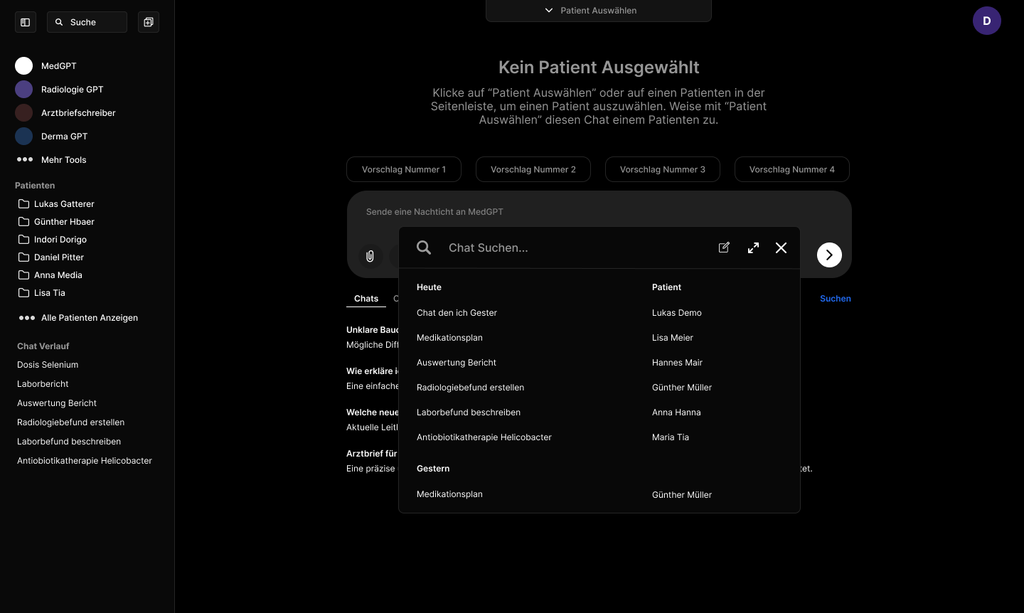 Eigene Chats je Patient für präzise, individuelle Antworten.